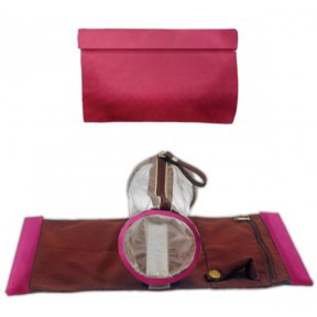 Velcro strip on clear plastic tube complies with TSA rules for easy airtravel.
